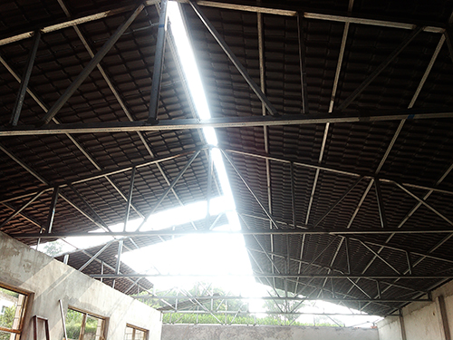 3、屋面瓦安装完毕后需清扫屋顶上零碎材料,检查瓦面有无损坏并清洁屋顶,如有错钻孔现象,可用树脂胶封堵。