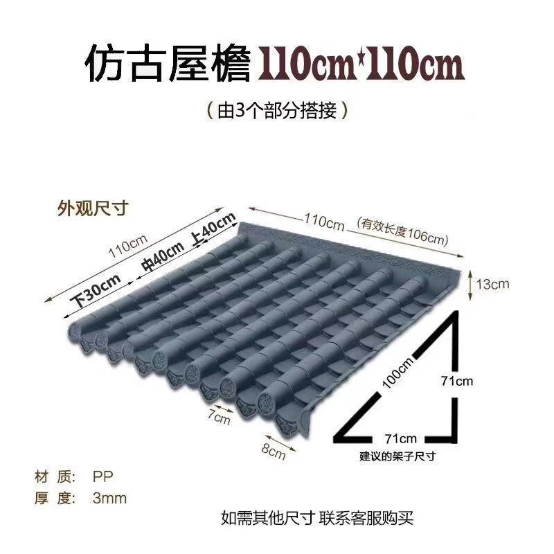 檐口处:安装檐口封边条,防止雨水沿檐口渗透;檐口瓦需伸出檐口线50-100mm。